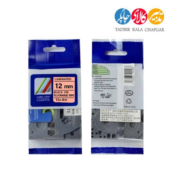 نوار لیبل زن برادر کد TZE-B31 که با نام کاست یا کارتریج برچسب زن برادر نیز شناخته می شود، بطور اختصاصی در لیبل پرینترهای سری P-Touch مورد استفاده قرار می گیرد. با توجه به کد فنی TZE-B31 که روی پکیج محصول درج شده، این نوار لیبل قابلیت چاپ رنگ مشکی روی لیبل نارنجی را دارد. عرض چاپ آن 12 میلیمتر و طول رول قابل چاپ 5 متر می باشد.